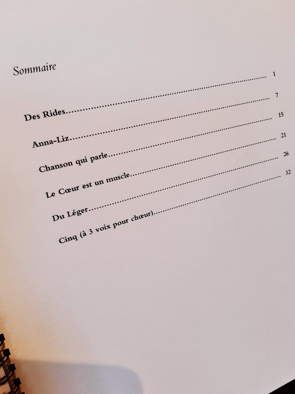 Pour les musiciens lecteurs débutants ou avancés, ce recueil de partitions à reliure métallique, contient 6 titres piano (clé de fa, clé de sol) et chant (clé de sol) :